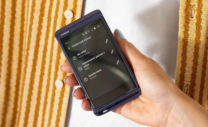 Pentru cei cărora le place să aibă opțiuni. Pe lângă funcția revoluționară Vasco My Voice, poți alege și o voce clasică, masculină sau feminină, pentru a reda traducerile. Acest lucru îți permite să potrivești tonul oricărei situații. Preferi un ton formal pentru întâlnirile de afaceri sau unul mai cald pentru conversațiile cu familia? Traducătorul tău, regulile tale.